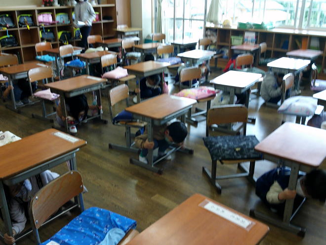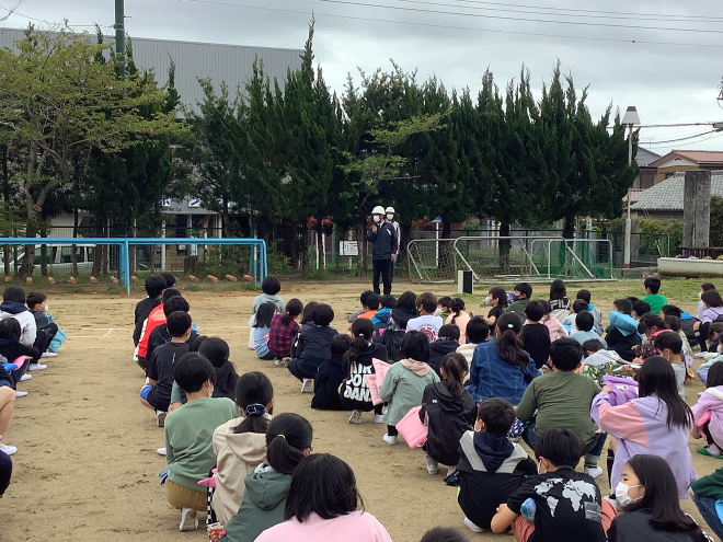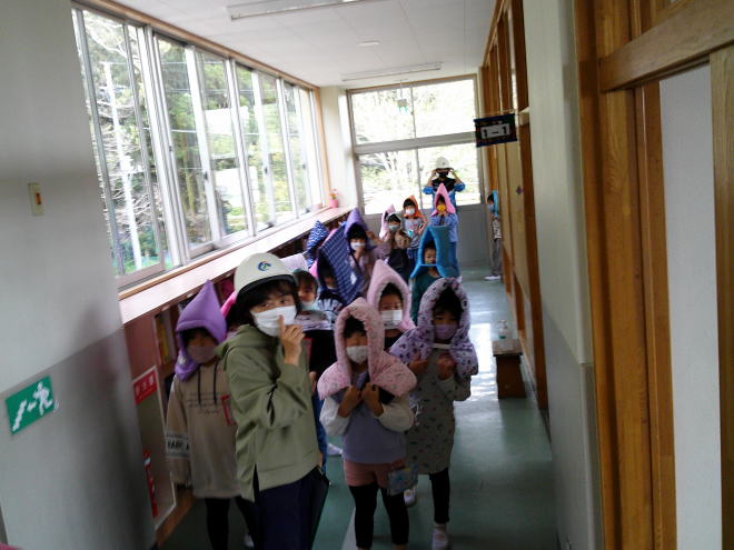 訓練でしたが、どの児童も「おさない」「走らない」「しゃべらない」「戻らない」の「おはしも」を意識して避難できました。
