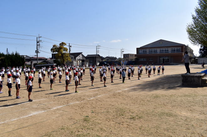 本来であればグラウンドや学校の前の道路を使っての実施でしたが、今年度はグラウンド状況等もあり体育館で実施しました。
