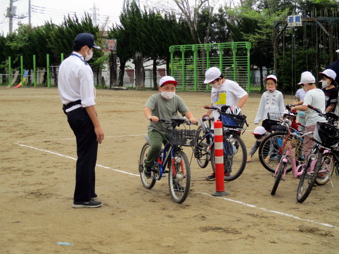 3・4年生は、自転車に乗りながらの実技体験でした。