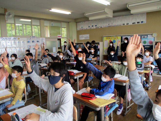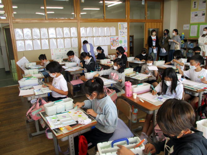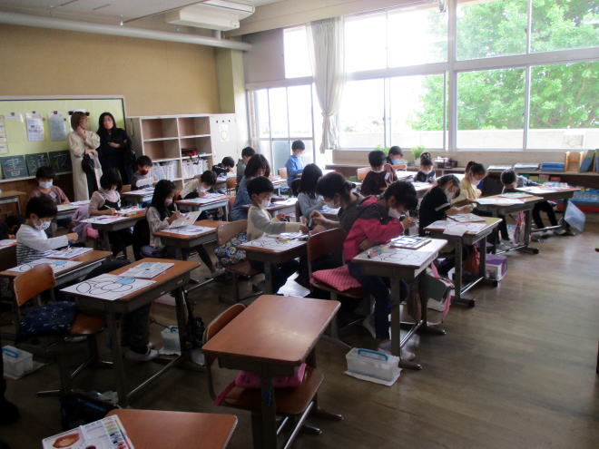 保護者の方には、2校時に参観して頂くグループ、3校時に参観して頂くグループの2つに分かれて頂いて「密」を防いだり、検温カードを提出してもらったりしてコロナ対策をして実施しました。