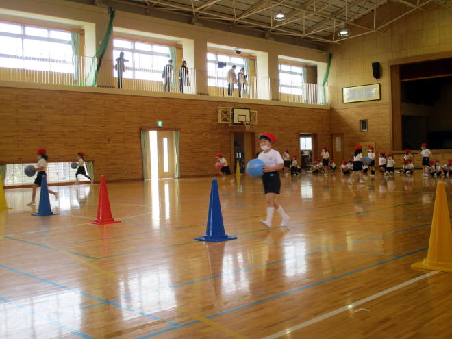 走・跳・投の様々な運動を行い、運動に親しむ素地を作っています。