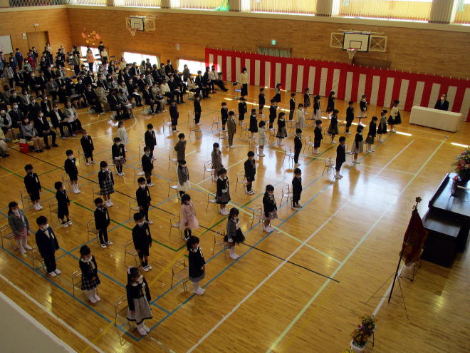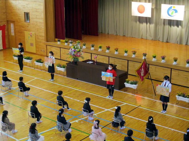 今年度は、在校生は6年生のみの参加だったり、たけのこオーケストラの生演奏だったりと、コロナ禍ながらできる限りの工夫をして式を挙行しました。
