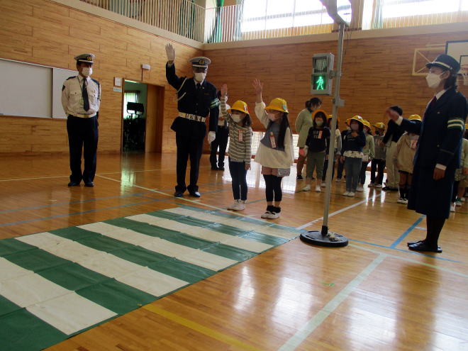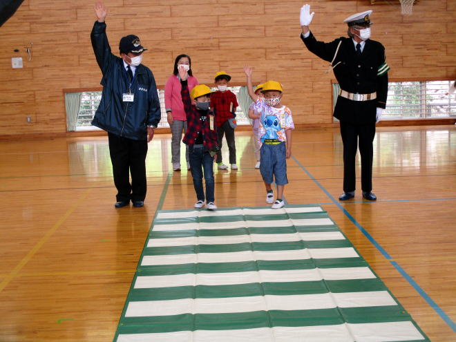 自分で左右の安全確認をしたり、手をしっかりと挙げたりして横断歩道を渡る大切さを学習できました。