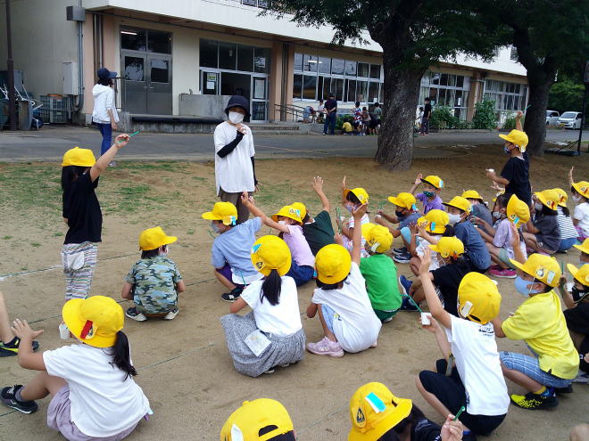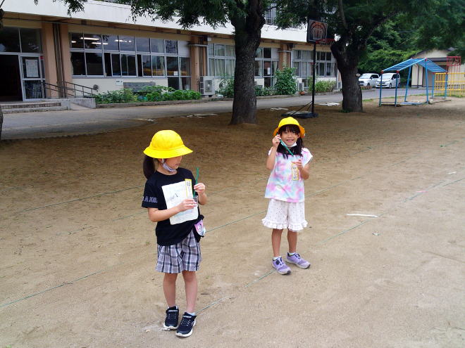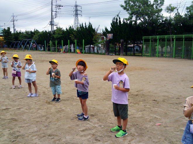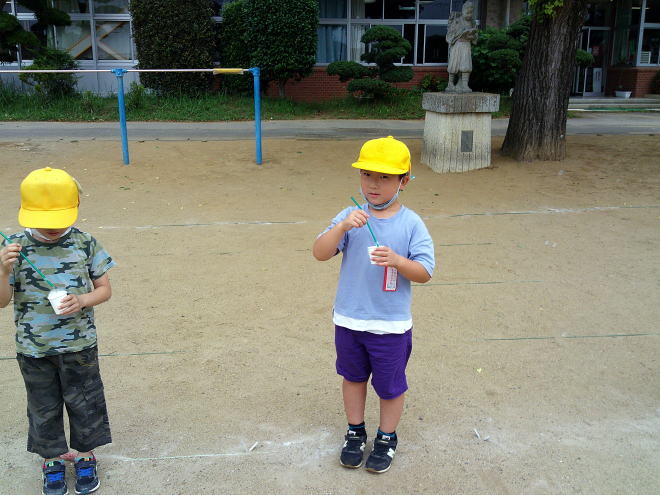1年生の生活科の学習でシャボン玉遊びを行いました。
