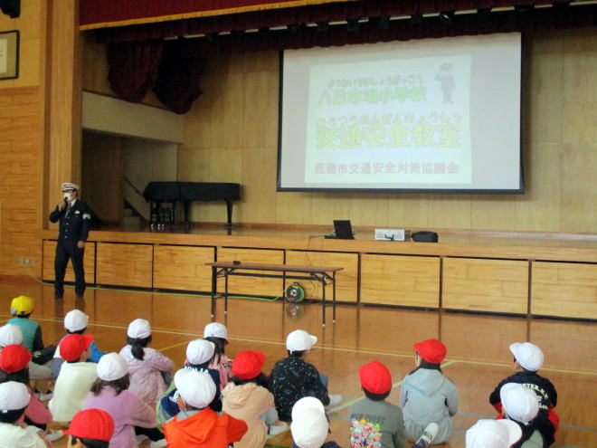 4月24日(水)に1、2年生を対象に交通安全教室が体育館で行われました。