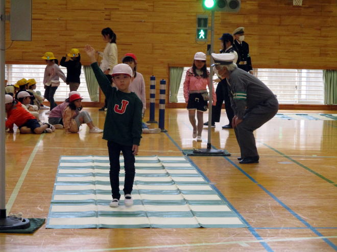 左右を確認したり、手をしっかりと挙げたりして横断歩道を渡ることができていました。
