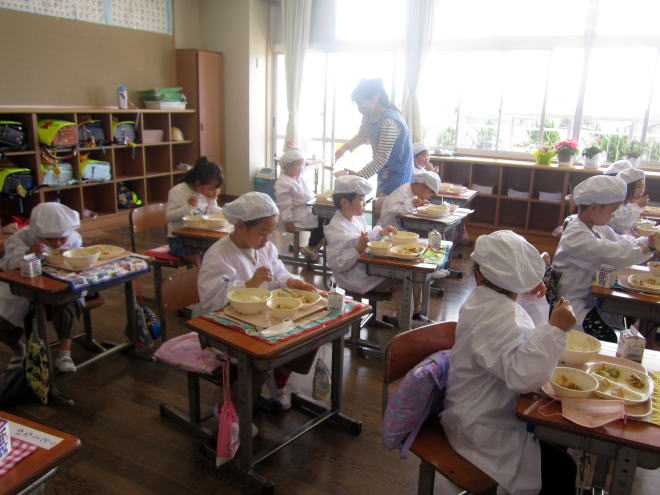 4月15日(月)に1年生がはじめての給食を食べました。