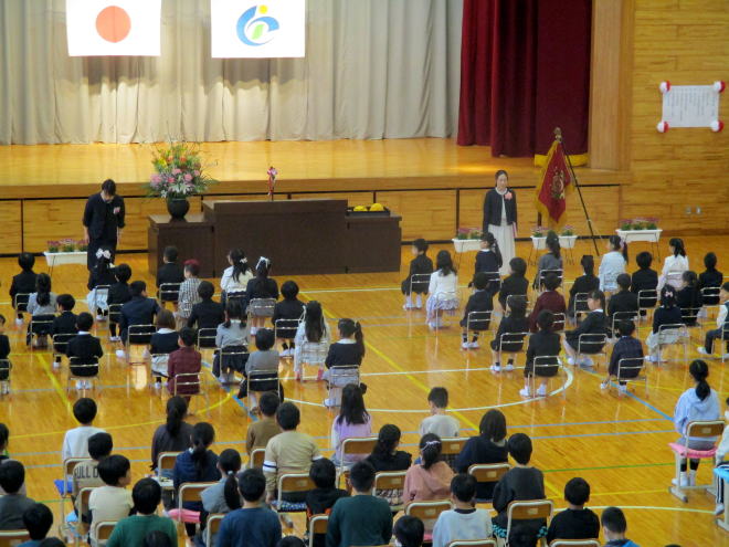 45名の新入生の入学を4年生から6年生が参加して迎えました。
