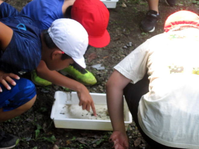 6月19日(水)に5年生が以前自分たちが植えた稲の生育状況をチェックしたり、田んぼの生き物を調べたりしました。
