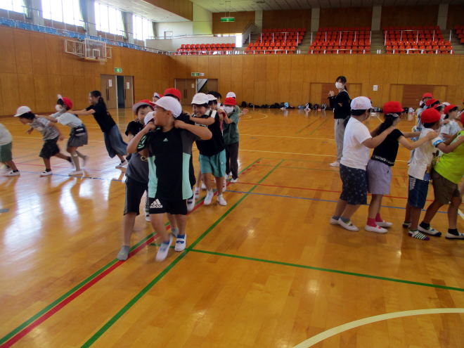 お昼は、おうちの方が作ってくれたお弁当を美味しそうに食べたり、野栄アリーナで楽しくレクを行ったりして過ごすことができました。
