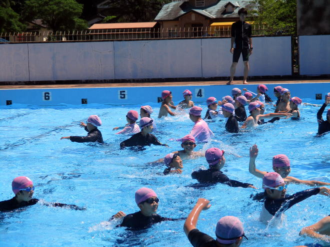 まだ、水温が低く寒そうな児童もいましたが、子どもたちの楽しそうな歓声が校舎まで聞こえてきました。