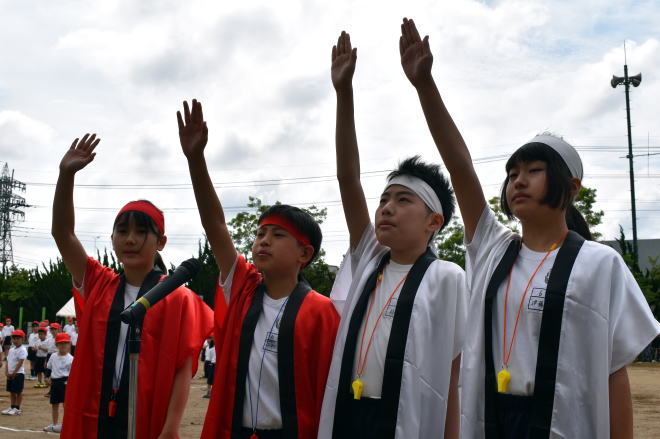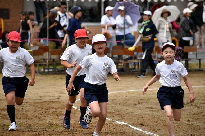 当日の朝方に雨が降りましたが、職員が早朝から土入れを行い準備したり、児童が事前にパイプ椅子等を出しておいてくれたおかげで定刻通り開始することができました。