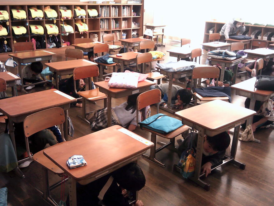 4月14日(月)に地震を想定した避難訓練が行われました。