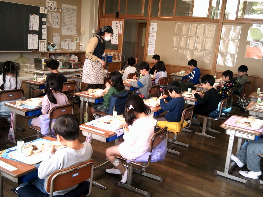 4月14日(月)に1年生がはじめての給食を食べました。